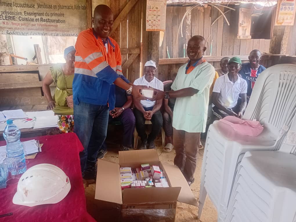 Fidèle à son axe de développement durable, la Setrag a mobilisé les ressources nécessaires pour améliorer les conditions de prise en charge du dispensaire local et augmenter la capacité d’accueil des riverains. La dotation comprend un stock de médicaments essentiels, notamment des antipaludéens, des antibiotiques, des antalgiques et divers consommables médicaux, ainsi que du mobilier destiné à améliorer les conditions d’échanges de la Chefferie de la commune.